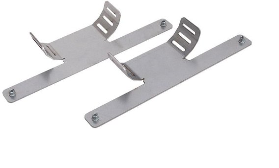 W zestawie Blacha montażowa aluminiowa (malowana proszkowo biały mat), uchwyt z poliwęglanu bezbarwnego z prowadnicami, 2 opaski stalowe nierdzewne z zamkiem kulowym (szer. 7,9 mm, dł. 1000 mm), komplet śrub montażowych