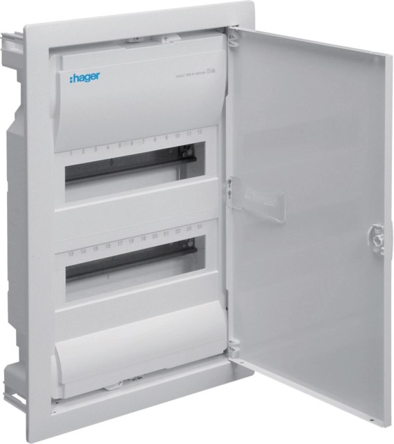 Rozdzielnica podtynkowa z drzwiami metalowymi, 2 rzędy, 24 moduły, IP30, HAGER Volta VU24NE