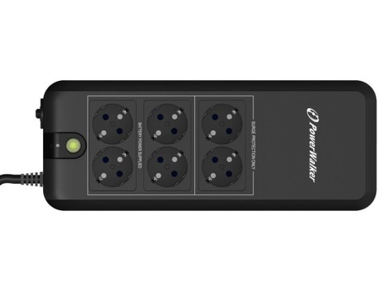 • 6x gniazd z zabezpieczeniem przeciwprzepięciowym (dwa bez zasilania awaryjnego przewidziane pod drukarki laserowe, skanery czy lampkę)