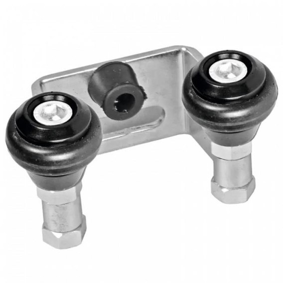 Stalowy element - uchwyt górny do bram przesuwnych samonośnych i szynowych, który stabilizuje je po zamknięciu uniemożliwiając ruchy boczne. Uchwyt posiada gumowane rolki zmniejszające hałas podczas zamykania bramy, a także gumowy odbój. Rozstaw między rolkami wynosi 60 mm. Produkt ocynkowany.